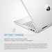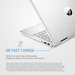 [2] Battery power adapter varies by configuration (45W or 65W available). Check SKU model for details. 65W battery adapter recharges your battery up to 50% within 30 minutes and 45W battery adapter recharges your battery up to 50% within 45 minutes. Tested when the system is off (using “shut down” command). Recommended for use with the HP adapter provided with the notebook, not recommended with a smaller capacity battery charger. After charging has reached 50% capacity, charging speed will return to normal speed. Charging time may vary +/-10% due to System tolerance. Available on select HP products. See http://store.hp.com for a full list of product features.