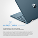 Recharges your battery up to 50% within 45 minutes when the system is off (using “shut down” command). Recommended for use with the HP adapter provided with the notebook, not recommended with a smaller capacity battery charger. After charging has reached 50% capacity, charging speed will return to normal speed. Charging time may vary +/-10% due to System tolerance. Available on select HP products. See http://store.hp.com for a full list of product features.