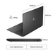 Battery life tested by HP using continuous FHD video playback, 1080p (1920x1080) resolution, 150 nits brightness, system audio level at 17% as image default, player audio level at 100%, played full-screen from local storage, headphone attached or through speaker (if no audio jack port), wireless on but not connected. Actual battery life will vary depending on configuration and maximum capacity will naturally decrease with time and usage.